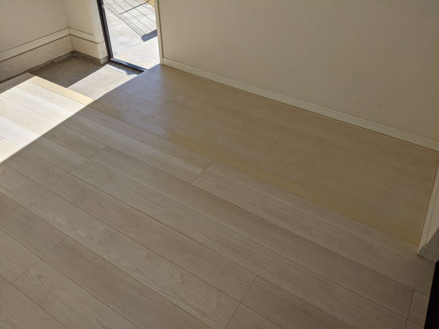 賃貸マンションの玄関部分の土間をフローリングに拡張しました。土間スペースが大きくお部屋としての活用部分が狭いことからオーナー様より広げたいとの事で工事を行いました。