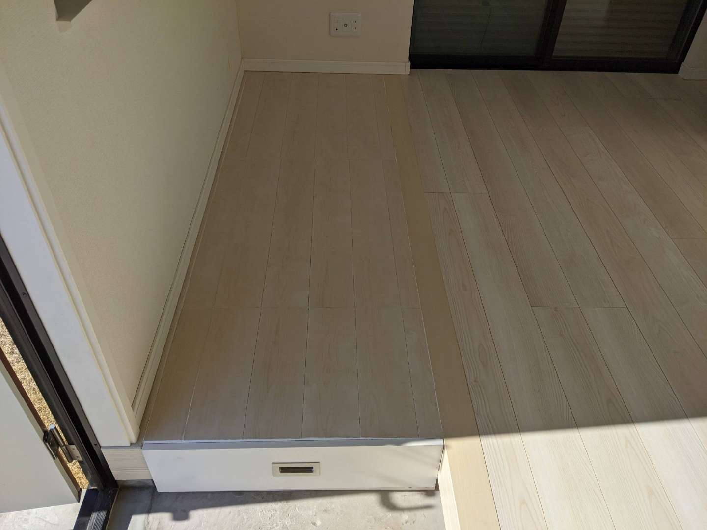 高さを上げることで床下部分には空間がある事から収納箇所も施工しました。